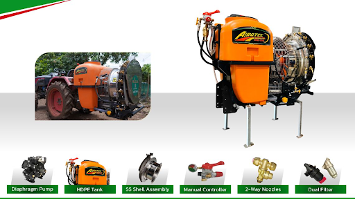 - Time & labour efficiency: Compared to manual/backpack sprayers, tractor-mounted blowers cover more area quickly with less manpower.